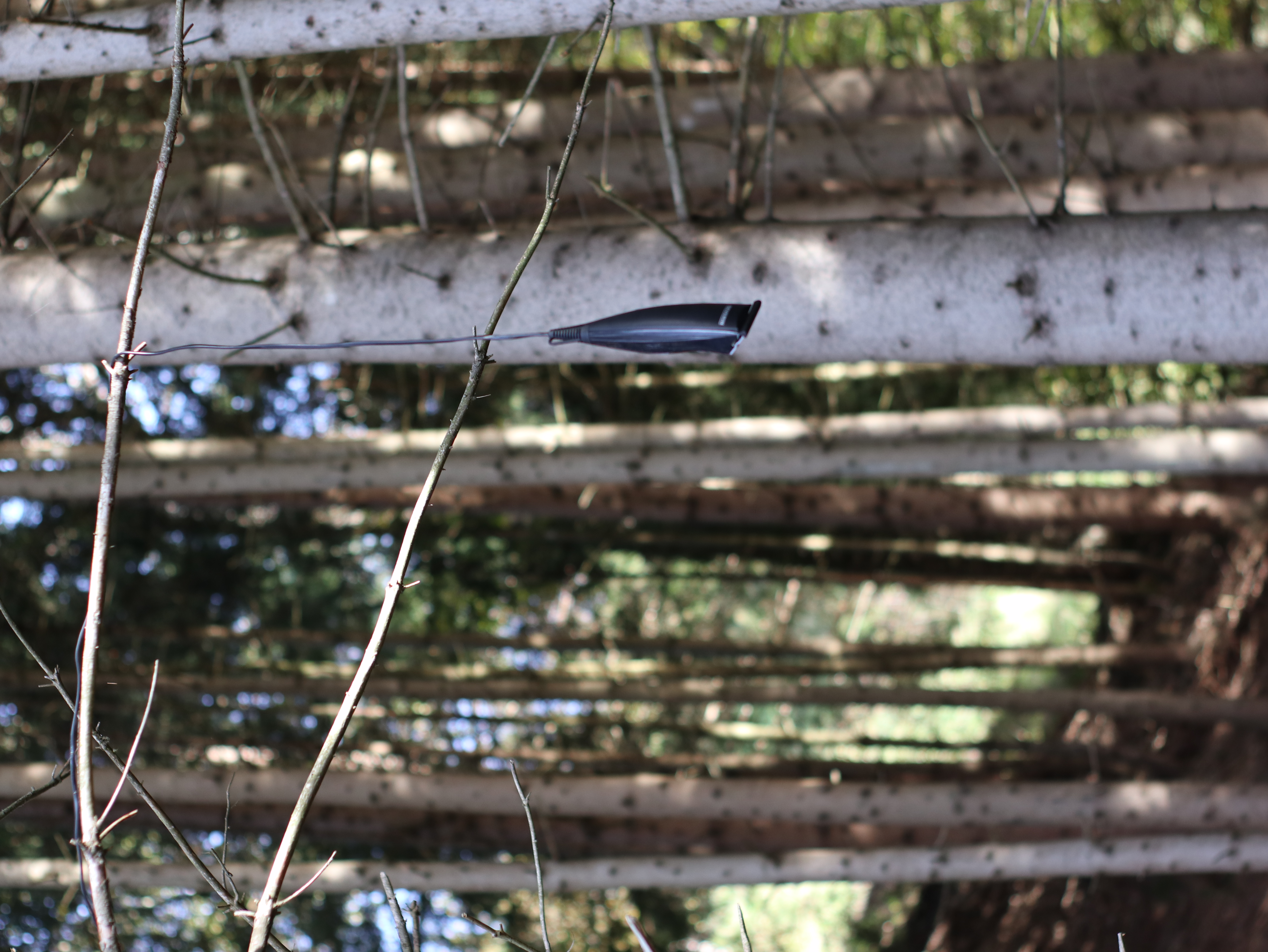 In einem etwas höher gelegenen Fichtenwald in der Alpenregion St.Johann im Pongau hängen diagonal 3 jeweils ca. 3m versetzte Haarschneidegeräte von kargen Ästen herab und geben das für sie typische Surren von sich. Da es sich um drei identische Haarschneidegeräte handelt, die alle ein beinahe identisches Geräusch von sich geben, entsteht durch die minimale Variation ein Phasenverschiebungseffekt, welcher die akustische Raumwahrnehmung verunsichert. Bei Drehen des Kopfes oder durch Bewegung in der Installation, verändert sich zugleich der empfundene Klang, als auch der Raumeindruck.